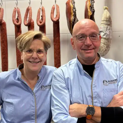 Laurens en Maaike Hoeben: in 1993 kwam Laurens Hoeben, kleinkind van de grondlegger en huidige uitbater van de slagerij in het familiebedrijf werken. In 2002 namen hij en zijn vrouw Maaike de slagerij over.